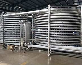 ●SUS304網(wǎng)帶抗拉力強高,使用其壽命大大延長,網(wǎng)帶兩側(cè)鏈片上設(shè)置擋邊,防止物料的滑落,適用于不同凍品的單凍及盤凍。